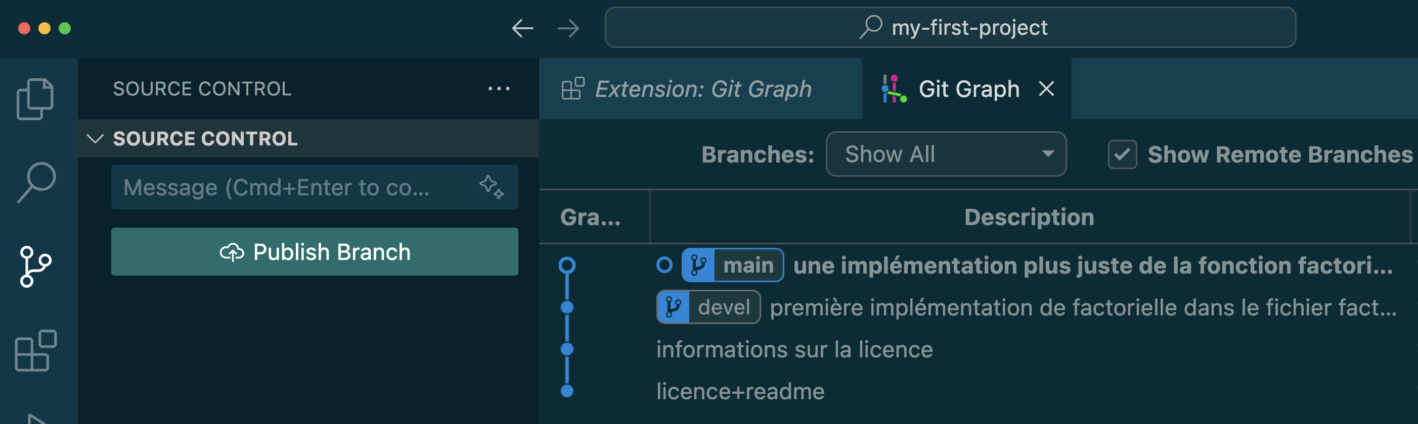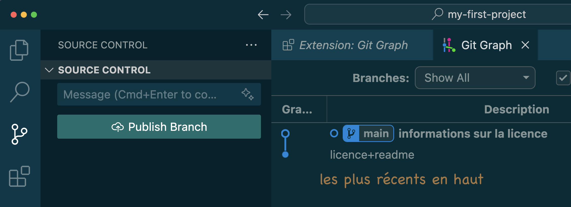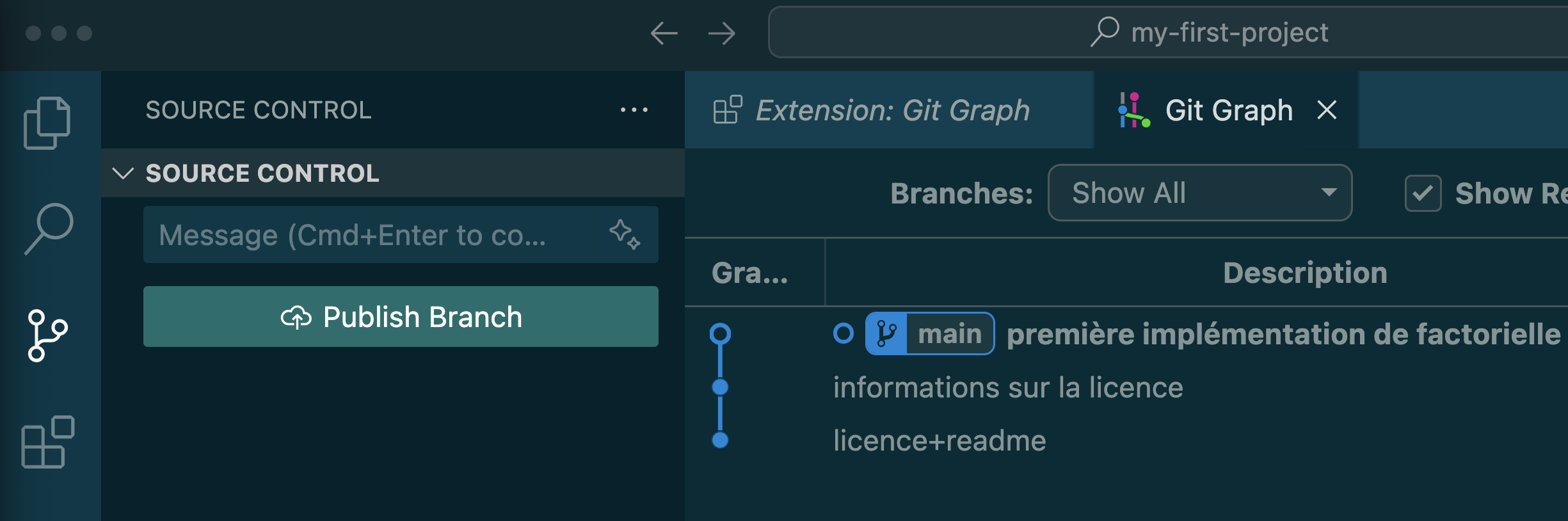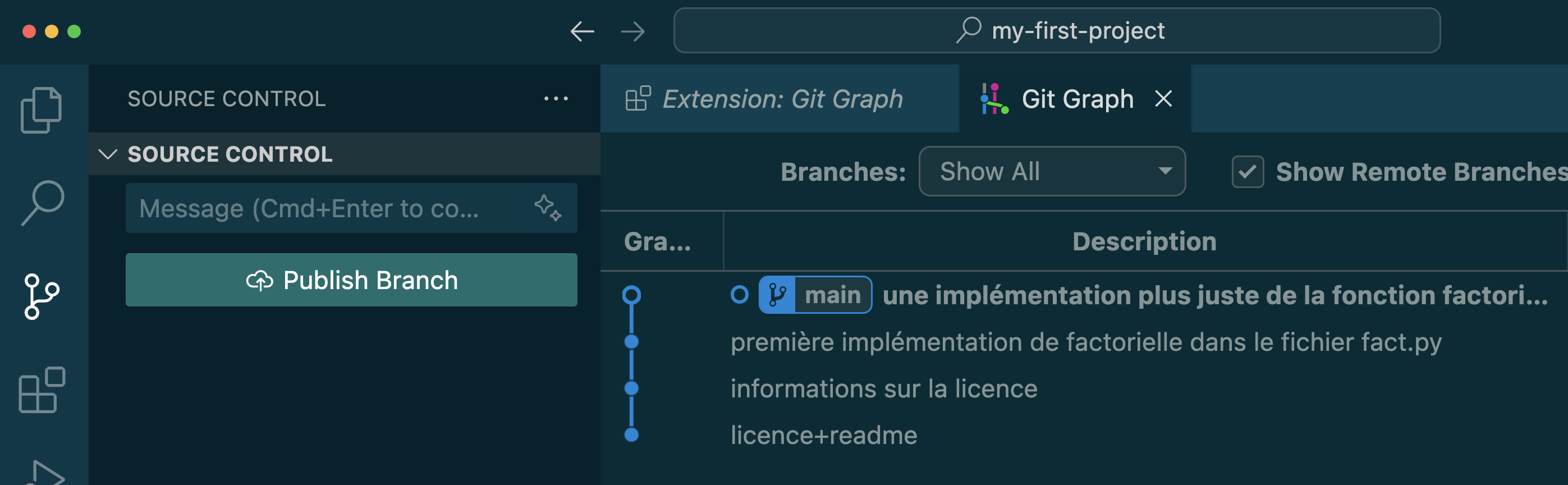 toutefois il y a une extension qui est très utile: cherchez dans les extensions vs-code le mot Git Graph et installez-là si nécessaire
