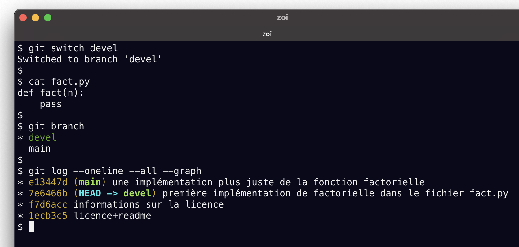 * e2c02ca (HEAD -> devel) première implémentation de factorielle dans le fichier fact.py
