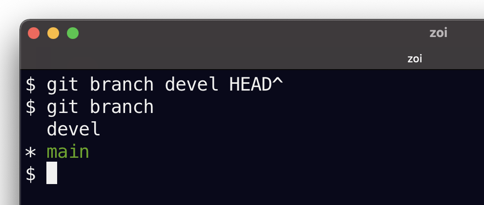 Du coup pour créer la branche devel sur le parent de HEAD on peut écrire