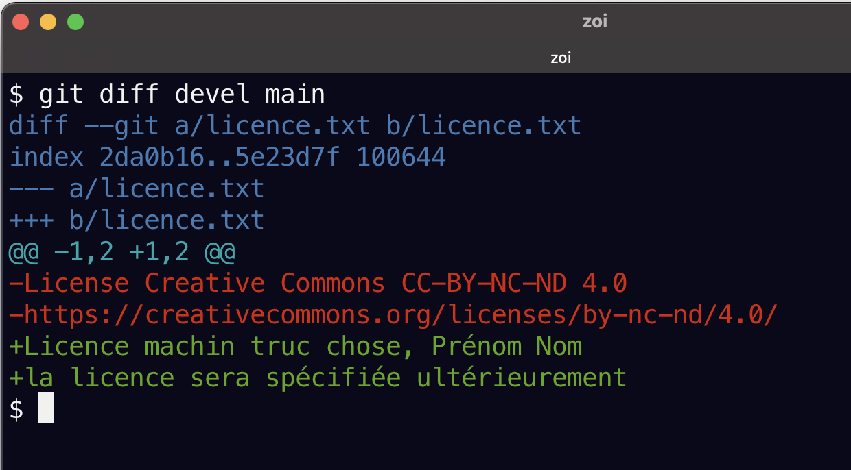 pour ma part j’ai mis licence CC comme message de commit, et voici ce que j’obtiens