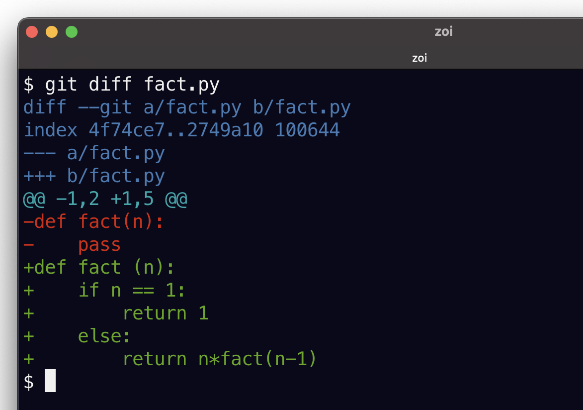 pour les curieux, je vous invite à vérifier que tout s’est bien passé; et pour ça on peut utiliser git diff à nouveau, mais entre plusieurs commits (faire git diff --help pour plus d’information)