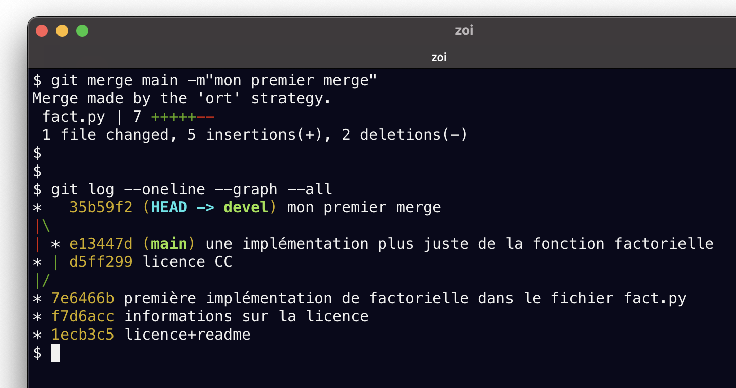 nous allons pouvoir conclure ce scénario, avec la fusion (le merge) des deux branches