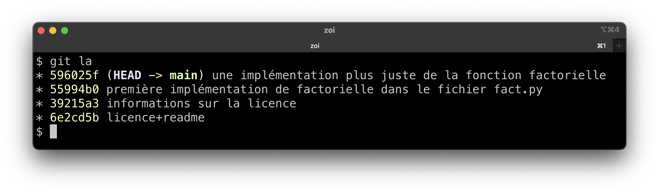1 file changed, 4 insertions(+), 1 deletion(-)après quoi git log nous montre ceci