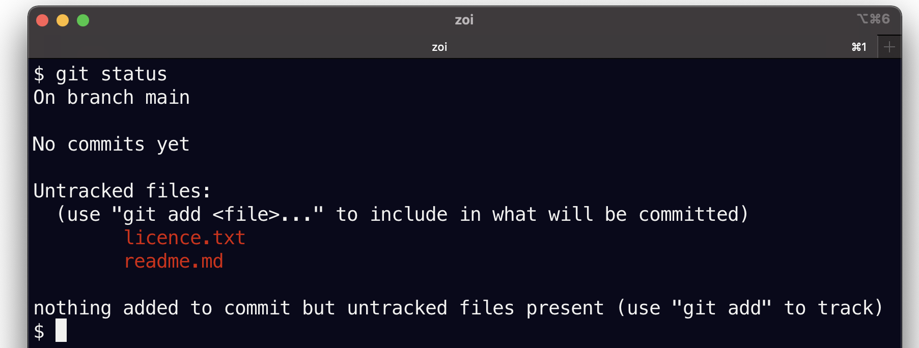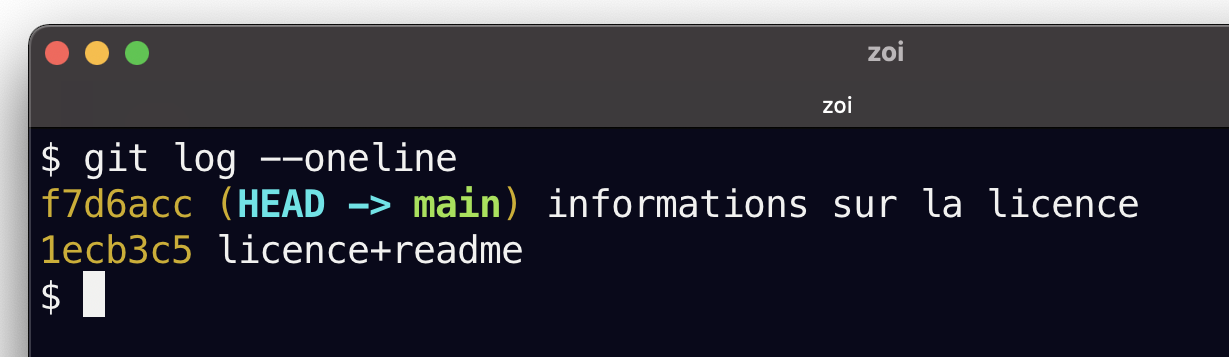 Dans un dépôt git, il y a toujours la notion de branche courante; on y reviendra, retenons pour l’instant qu’à la création du dépôt, on nous crée une branche qui s’appelle main, et qui est la branche courante