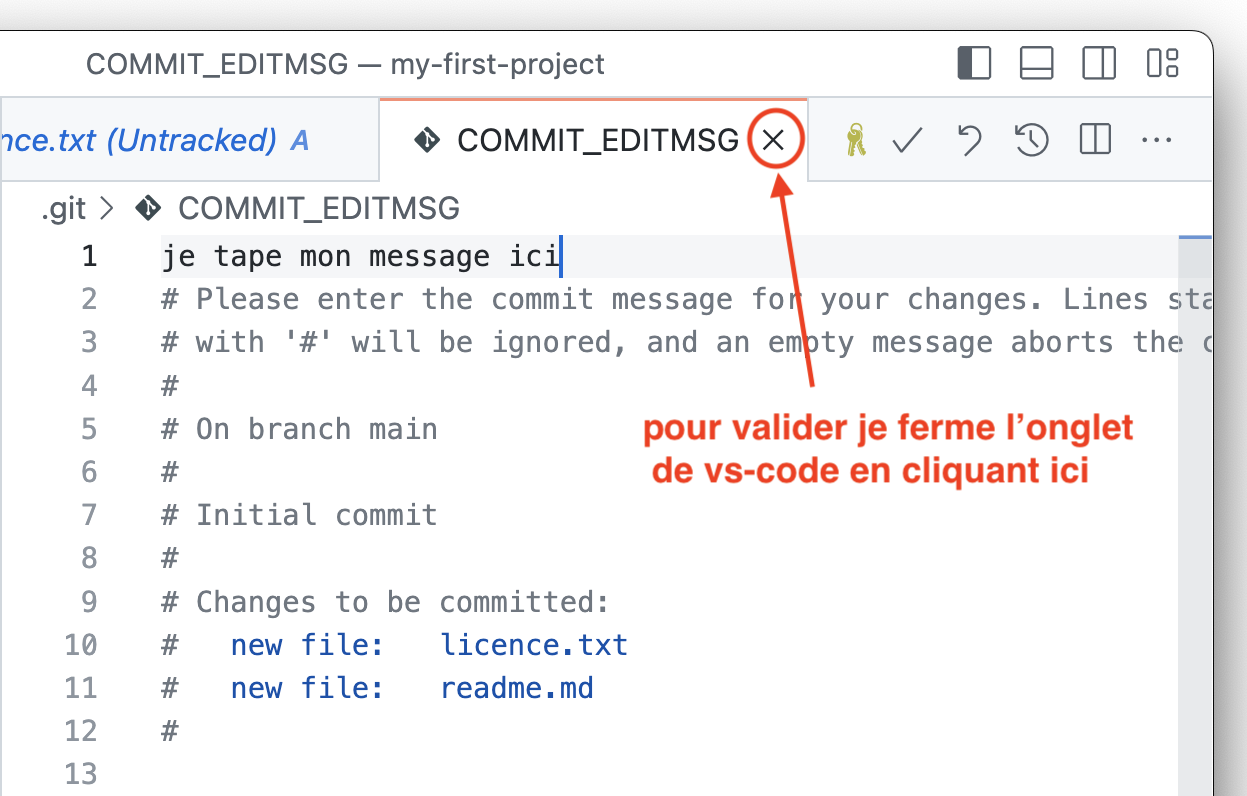 par exemple on va modifier la licence; pour ça, utilisez par exemple votre éditeur de code, pour mettre dans licence.txt le contenu suivant :