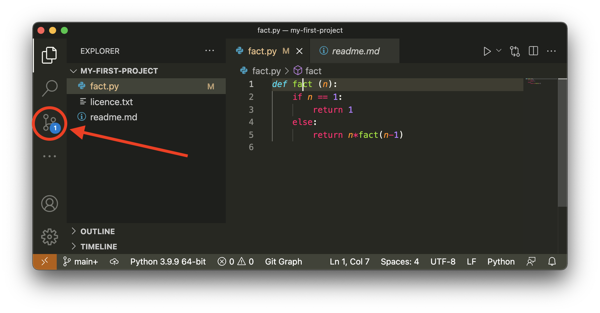 echo "ce répertoire est réservé à l'implémentation d'une fonction factorielle" > readme.mdIl est important aussi de définir un fichier de licence afin d’expliquer les droits des personnes qui utiliseront un jour votre code. Nous ne nous appesantissons pas là dessus aujourd’hui.